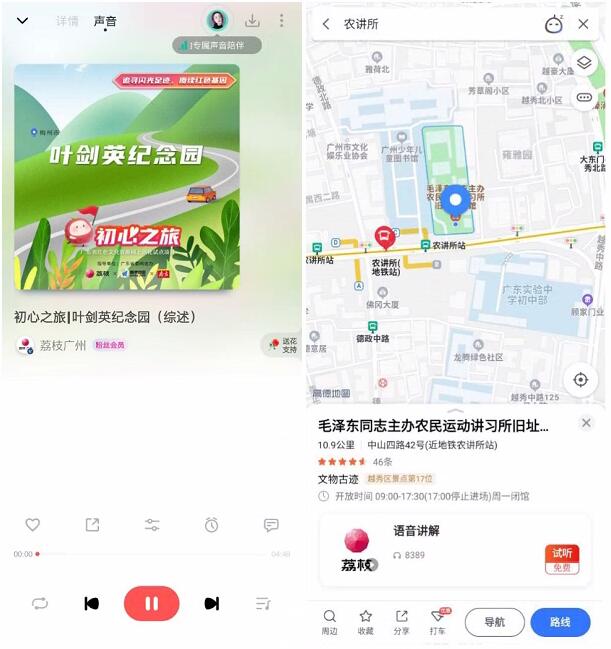 首批在高德地圖和荔枝平臺上線的《初心之旅》系列音頻,涵蓋了中共三大會址紀(jì)念館、廣州農(nóng)講所舊址等廣東10個紅色旅游經(jīng)典景區(qū)。